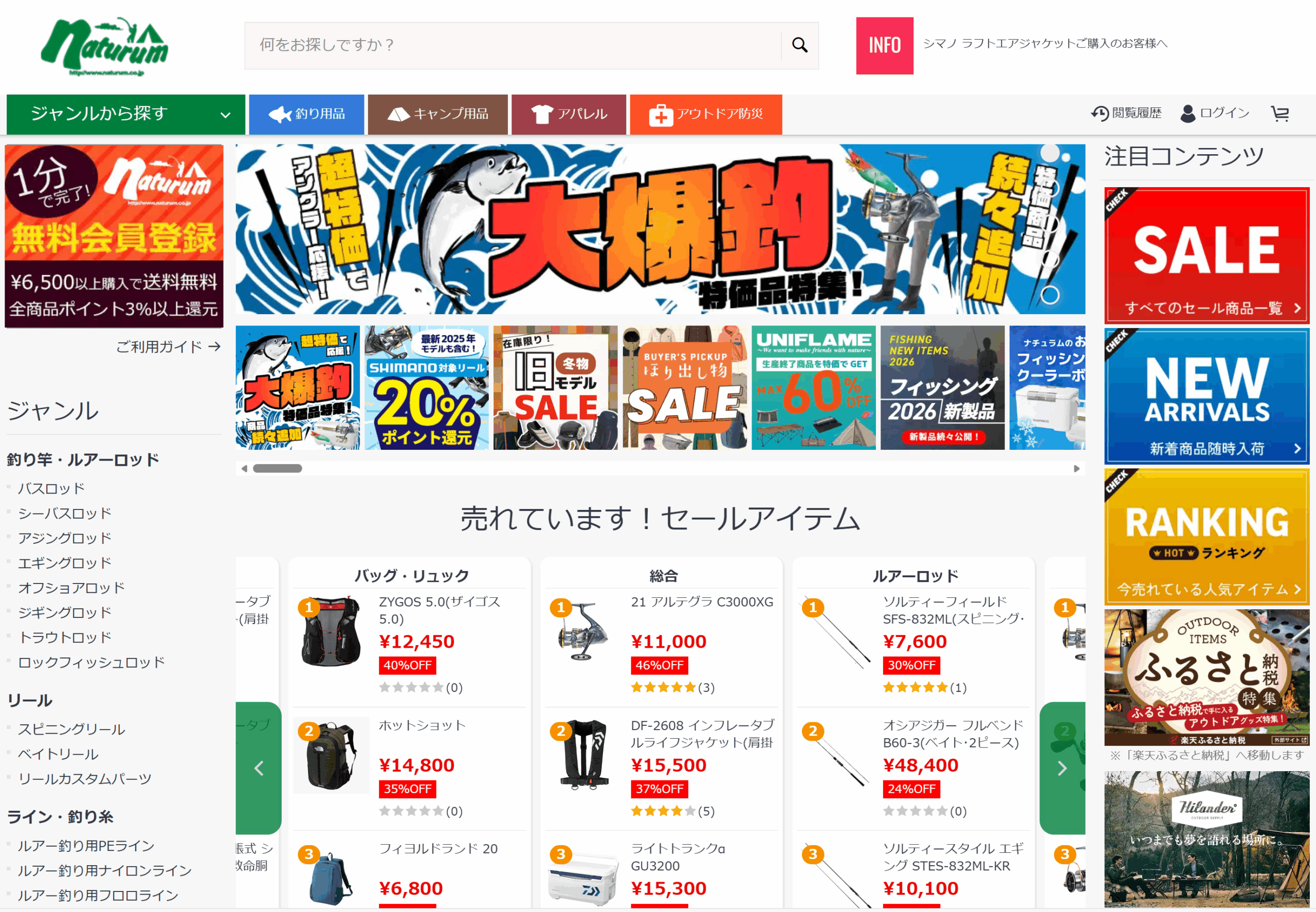 ナチュラムはキャンプ・登山・フィッシングまで幅広く扱う総合アウトドアEC。
