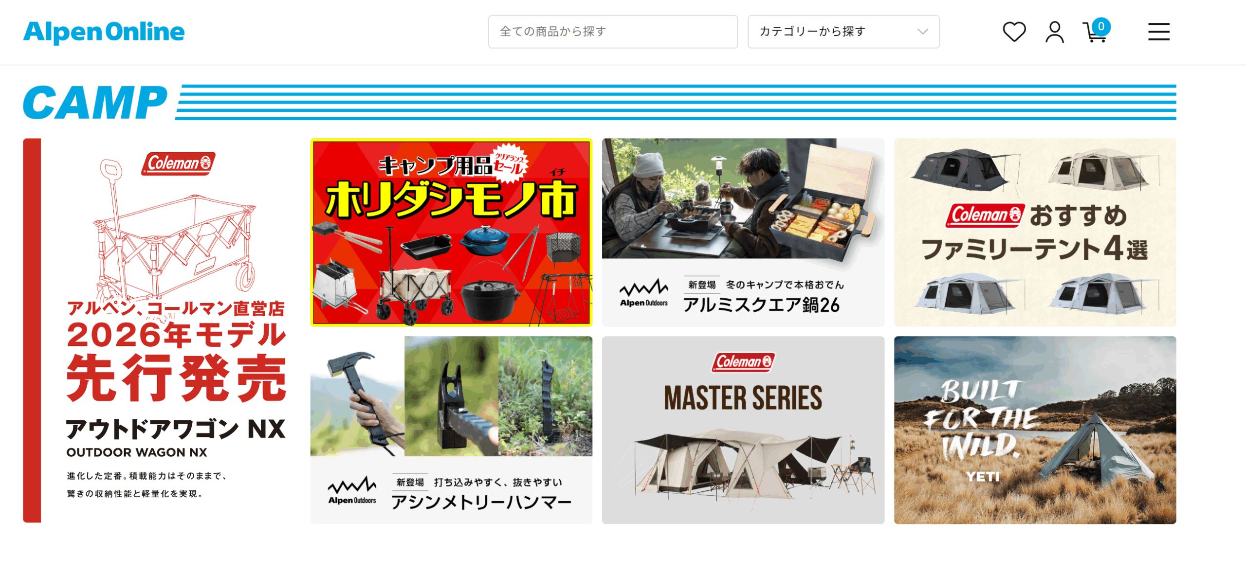 全国に実店舗を展開するアルペングループのアウトドア専門EC。
