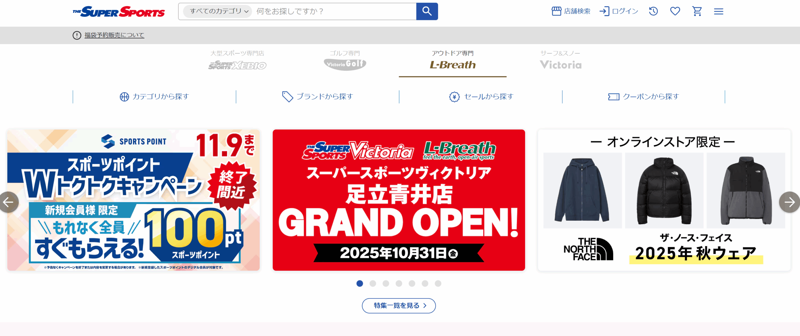 また、カテゴリ・ブランド・用途別のナビゲーションが整理されており、