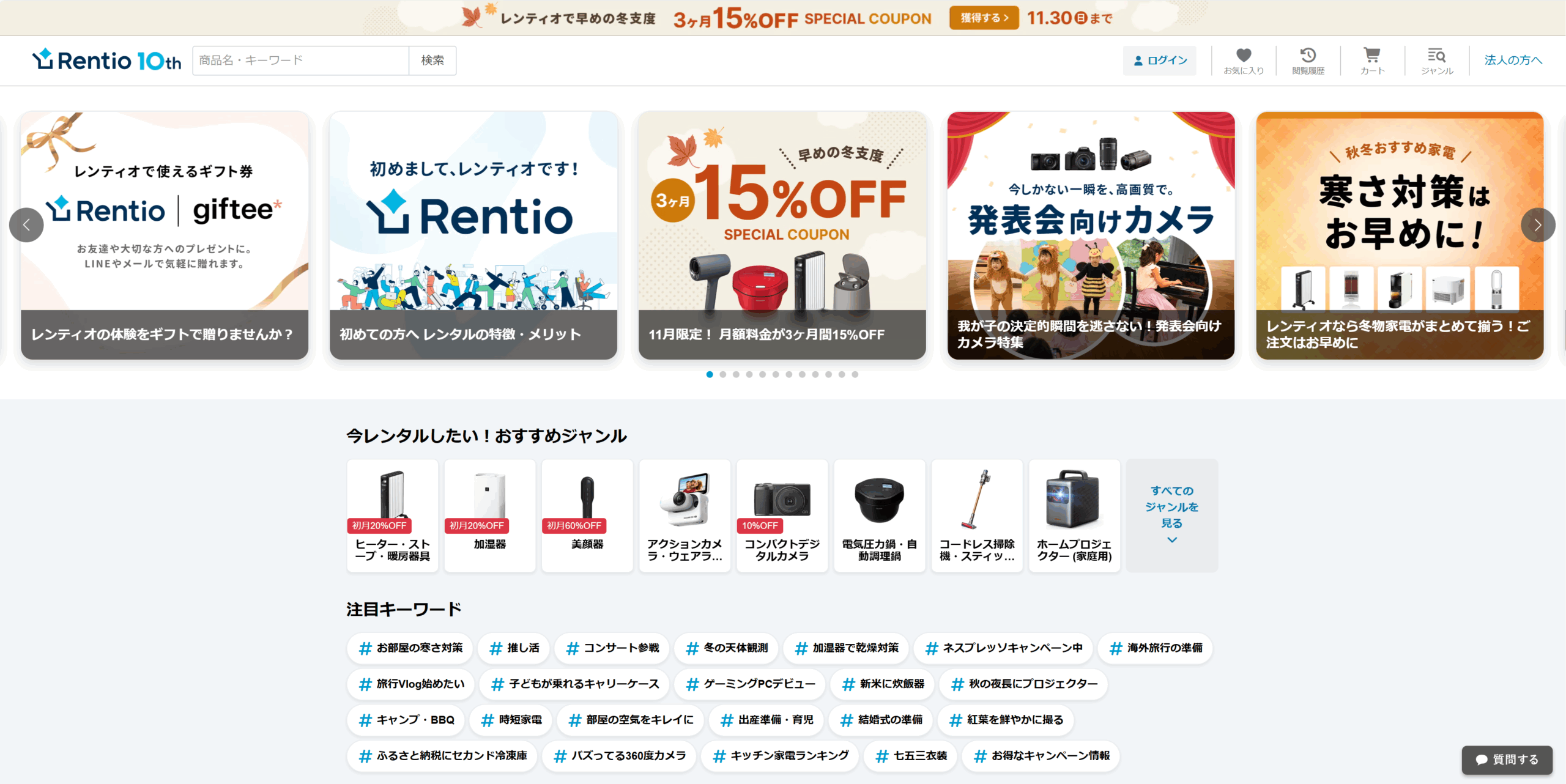 「レンティオ」は、“買わずに試せる”をコンセプトにした家電レンタルサービスとして知られています。