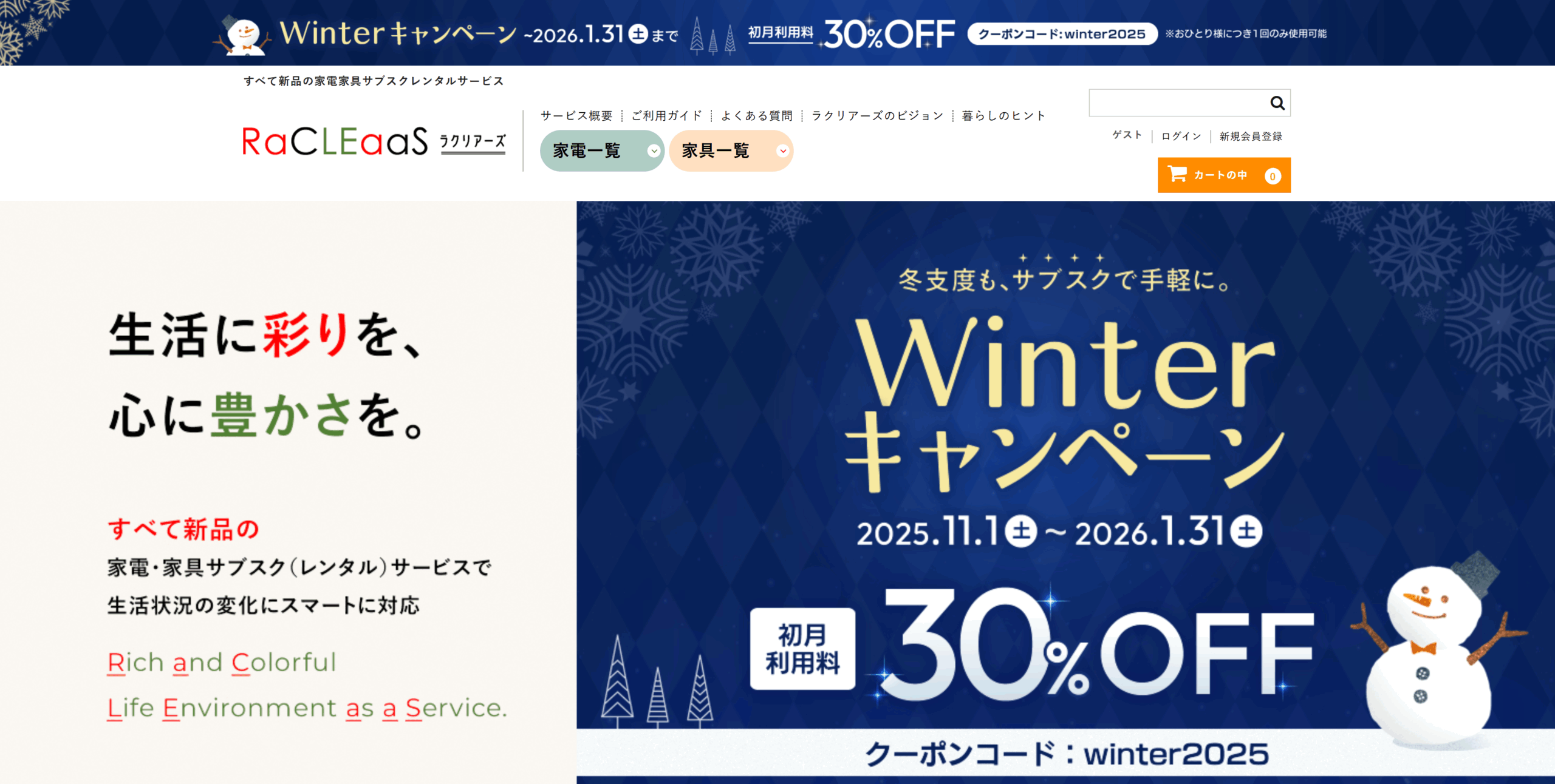 「RaCLEaaS(ラクリアーズ)」は、最新家電を気軽に利用できる定額制サービス。