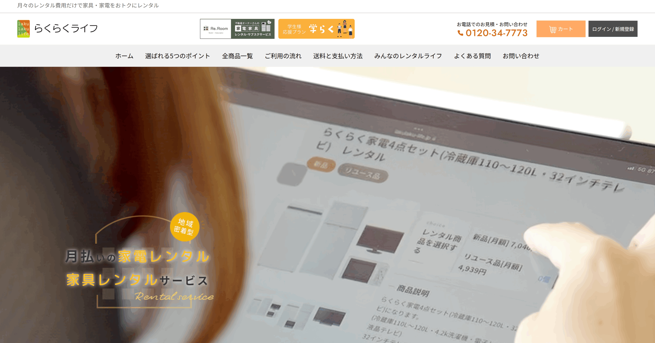「らくらくライフ」は、全国対応の老舗家電・家具レンタルサービスです。