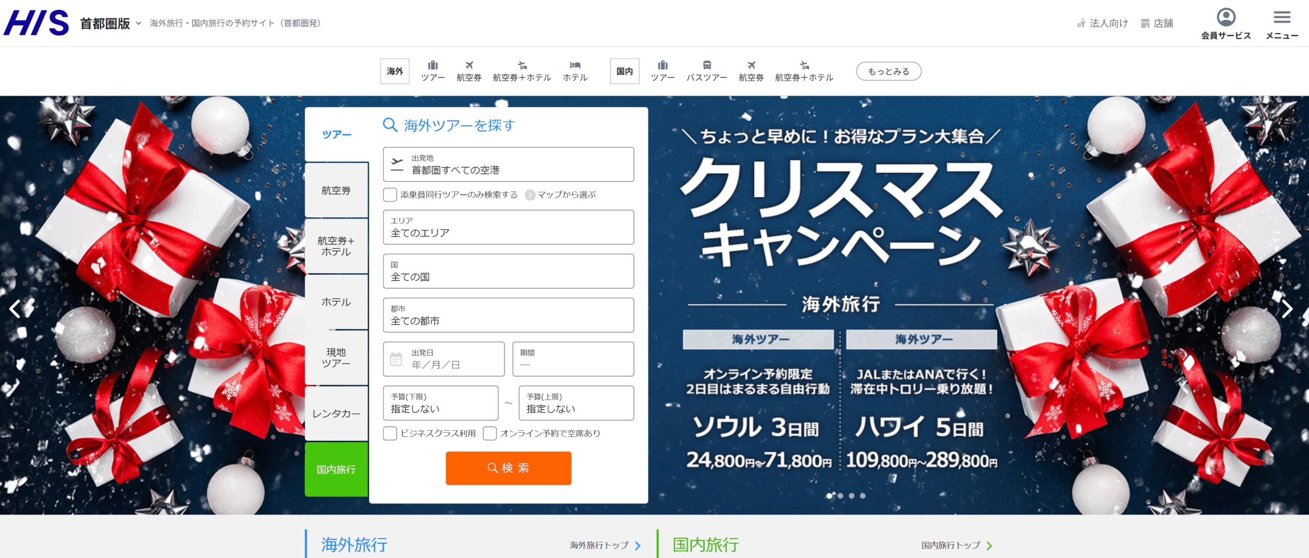 HISは、国内外で広く知られる大手総合旅行ブランド。