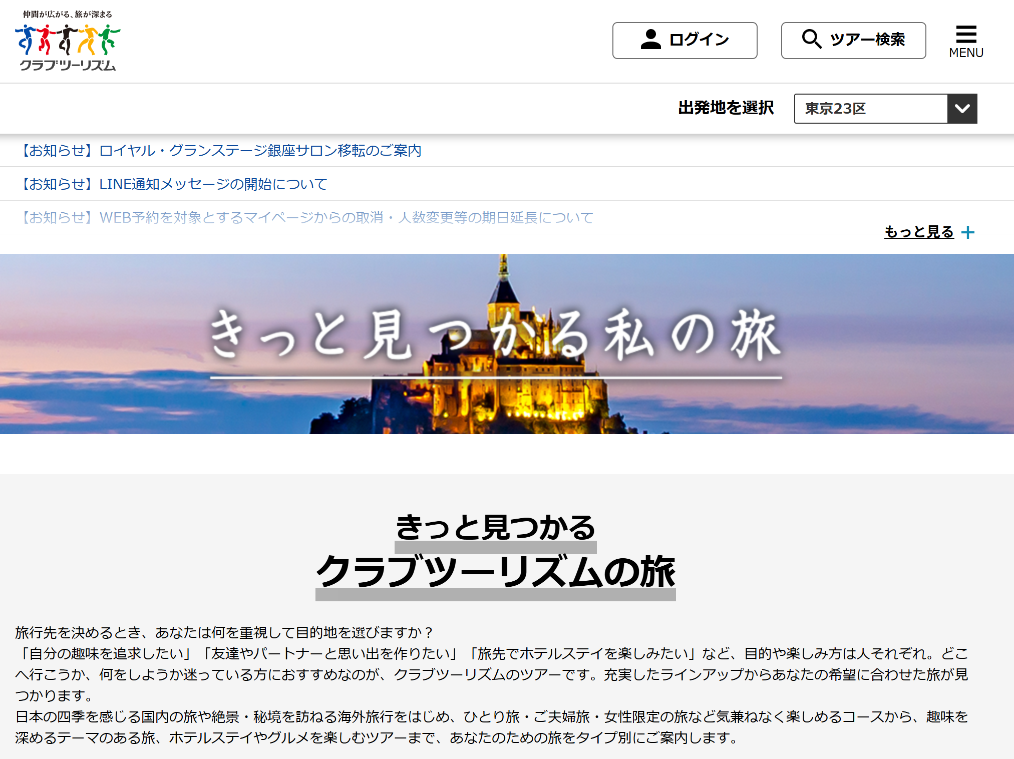 クラブツーリズムは、JTBグループが運営する旅行会社。